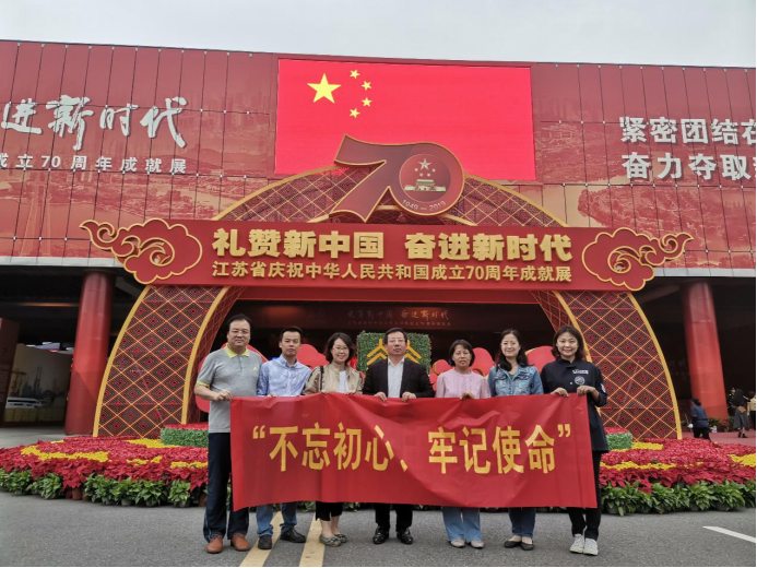 10月10日,永利集团3044欢迎光临组织党员干部和师生代表来到南京国际博览中心,共同参观了“礼赞新中国,奋进新时代——江苏省庆祝中华人民共和国成立70周年成就展”。其中,永利集团官网党委书记张秋野和教师代表、支部书记共7名成员带领学生一同前往参观。