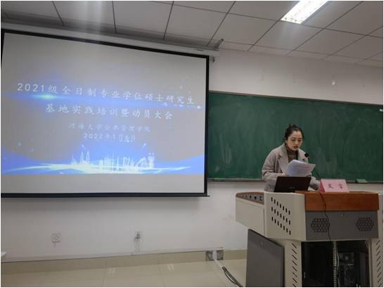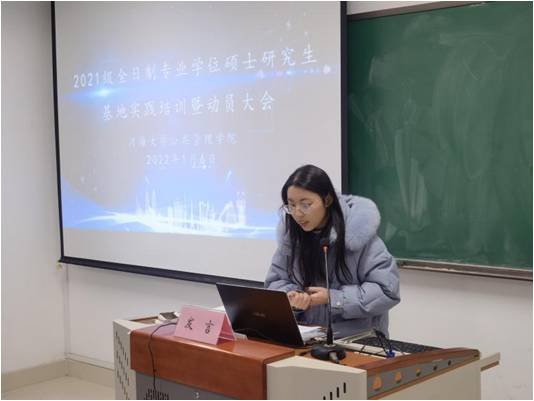 研究生秘书田然老师针对基地实践的管理和论文工作方面,向研究生们作了详细解读。在基地实践期间,每位研究生需听取专题讲座,把握各项时间节点,及时与双导师交流沟通论文工作。本年度面向每个基地单位均设立了学生联络人,田然老师提醒各位联络人及时组建同单位QQ群,帮助各位同学尽快适应基地实践生活。