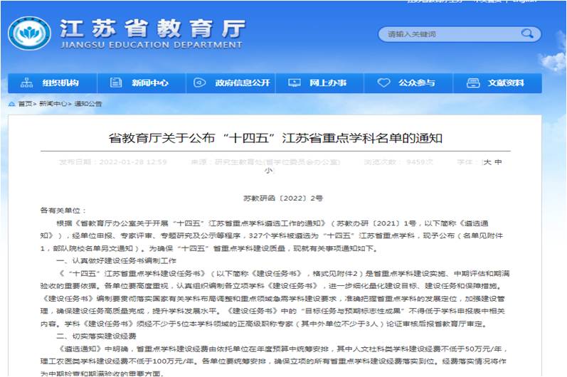 江苏省重点学科是江苏四级学科体系(江苏高校世界一流建设学科、江苏高校优势学科、省重点学科和校特色学科)的重要基石,是培养高层次人才、集聚优秀学术团队、开展科学研究和服务经济社会发展的重要载体。