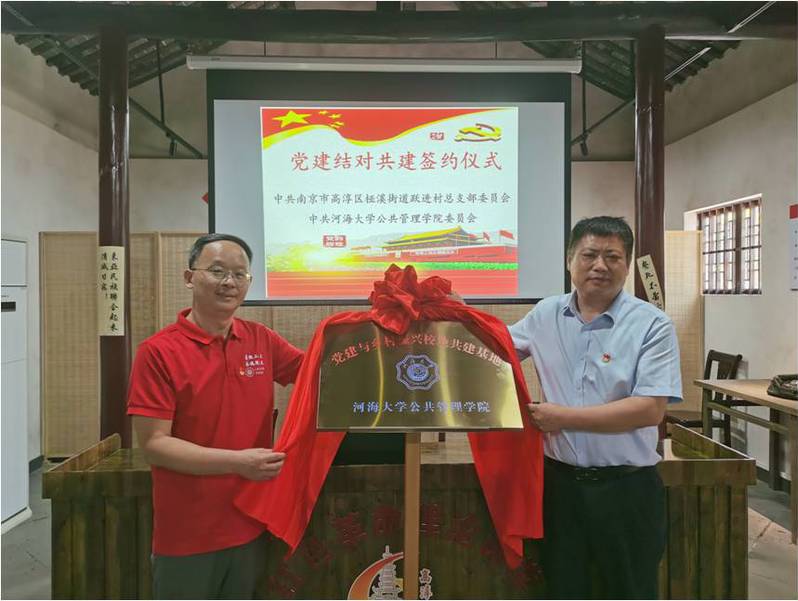 作为苏南地区红色文化资源带动乡村振兴的一个样板,高淳区桠溪街道跃进村充分挖掘红色文化内涵,高度重视红色资源的活化利用,彰显红色文化魅力。 “西舍红色堡垒”,不仅成为教育广大党员群众发扬红色传统,传承红色基因,汲取奋进力量的重要载体,也成为推动经济增长与富民惠民同步推进、红色旅游与乡风文明同步建设的有效路径。在党日活动现场,永利集团3044欢迎光临党委书记蒲晓东与高淳区桠溪街道跃进村党总支书记、南京西舍红色堡垒负责人黄世宝为“永利集团3044欢迎光临党建与乡村振兴校地共建基地”揭牌并签署共建协议书,双方就共享党建资源、建设课程思政、深化科研合作、共谋产业发展、组织志愿服务、经验分享交流等六个方面达成共建协议,并就落实校地合作、打造红色旅游品牌以及探索乡村振兴模式展开深入交流。