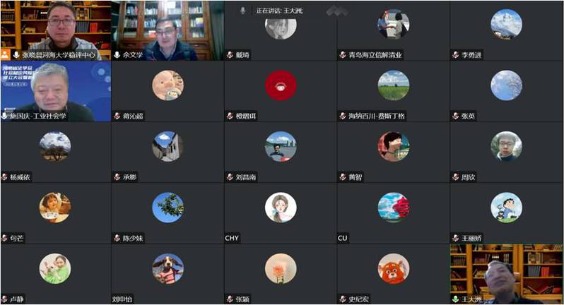 施国庆教授从学术研究、工程实践等方面对余文学教授的报告进行了点评,并分享了国内外最新研究动态。在提问互动环节,施国庆教授、余文学教授和张晓晨副主任对20余个问题进行了一一解答。本次学术报告的参会人员热情很高,提出了许多政策、理论、实践方面的问题,讨论非常热烈,学术报告持续了将近3个小时。中国社会学会工业社会学专业委员会第三届理事长、中国科学院大学王大洲教授对本次学术报告进行了总结发言。