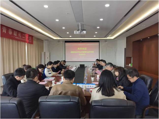 2月27日,湖南农业大学公共管理与法学学院院长李燕凌、党委书记林丽娅一行来永利集团官网调研交流。学院党委书记蒲晓东、院长朱新华、党委副书记朱志梅、施国庆教授、黄涛珍教授等参加了座谈会。会议由蒲晓东书记主持。
