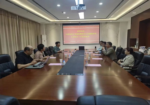 10月19日,中国海洋大学国际事务与永利集团3044欢迎光临院长王琪一行来永利集团官网调研交流。学院党委书记蒲晓东、原院长黄涛珍、副院长孙中艮、副院长陈涛、行政管理系杜春林副教授参加了座谈会。会议由蒲晓东书记主持。
