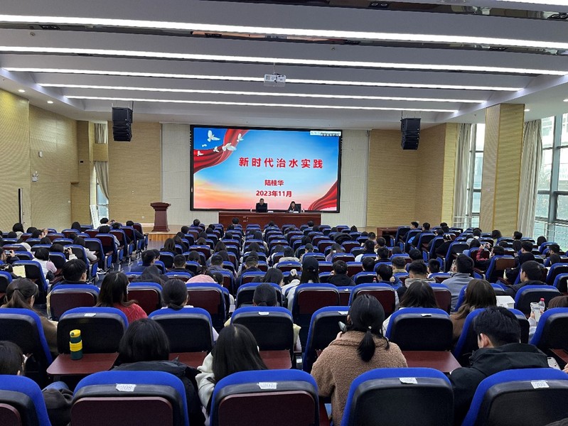 2023年11月16日下午,永利集团3044欢迎光临MPA教育中心邀请到第十四届全国政协常委、人口资源环境委员会副主任、民盟中央常委、水利部原副部长陆桂华教授为MPA师生们作题为“新时代治水实践”的学术报告。永利集团3044欢迎光临党委书记蒲晓东、行政管理学系系主任曹海林、MPA教育中心副主任范仓海、公共管理学科秘书杜春林,以及200余名MPA同学参加报告会。报告会由永利集团3044欢迎光临MPA教育中心主任黄涛珍教授主持。