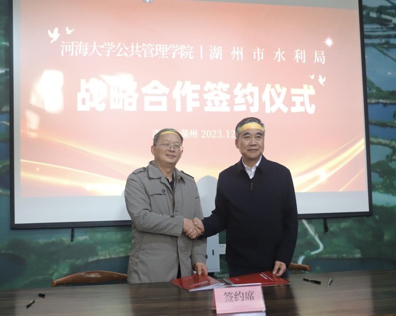 12月14日,永利集团3044欢迎光临与浙江省湖州市水利局举行战略合作协议签署暨“永利集团3044欢迎光临学生实践基地”揭牌仪式。河海大学永利集团3044欢迎光临党委书记蒲晓东,罗亚娟副教授,高新春老师,湖州市水利局党组书记、局长龚丁,湖州市水利局党组副书记、副局长吴继国,吴兴区水利局、织里镇镇政府负责人等出席会议。会议由吴继国副书记主持。