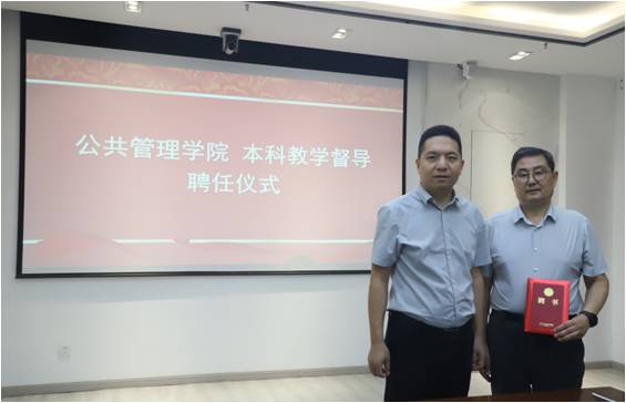 本科教学督导聘任仪式环节,由曹海林副院长宣读学院本科教学督导名单,朱新华院长为督导颁发聘书并合影。朱金秀副处长对本科教学工作给予充分肯定,明确本科教学督导在加强本科教学质量以及教学管理行为方面具有动态监督职责,在专业建设、人才培养模式改革、人才培养方案修订、课程教学等方面具有建议指导职责。同时,也对学院课程建设和教学竞赛培育提供了宝贵经验和指导。