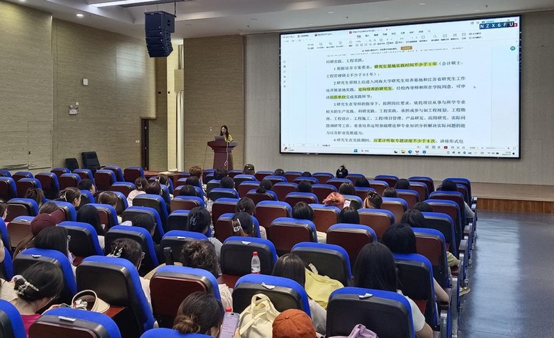 研究生培养秘书田然老师针对基地实践期间的学籍管理、论文工作环节和日常生活管理等方面向同学们做了详细解读。在基地实践期间,每位研究生需听取规定次数的专题讲座,登陆系统填写各环节日志和记录,同时与校内校外双导师保持紧密联系、推进学位论文撰写工作。在日常生活管理方面,田老师提醒各位同学认真学习《永利集团3044欢迎光临全日制专业学位硕士研究生基地实践手册》,遵守学校和基地单位双方的制度规定,注意用水用电安全。