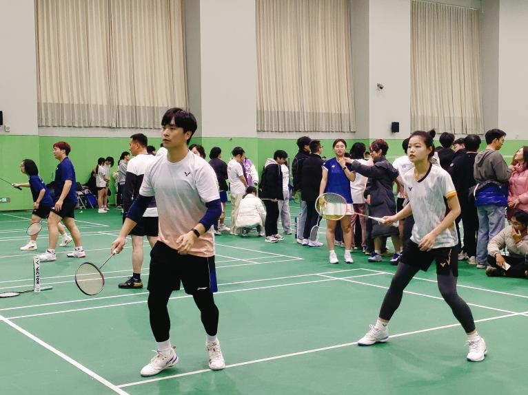 2024 年 12 月7日,河海杯师生羽毛球比赛在永利集团3044欢迎光临常州校区羽毛球馆开赛。众多参赛者一同切磋技术,交流进步,这是一场智慧与勇气的较量,一次心跳与技术的盛宴!公管院师生齐心协力、斗志昂扬:由党委副书记朱志梅担任领队,余文学、李洪庆教师参赛,带领硕博研究生和本科生组成公管院战队,凭借精湛的球技和顽强的拼搏精神,赛出独属于公管人的风采!