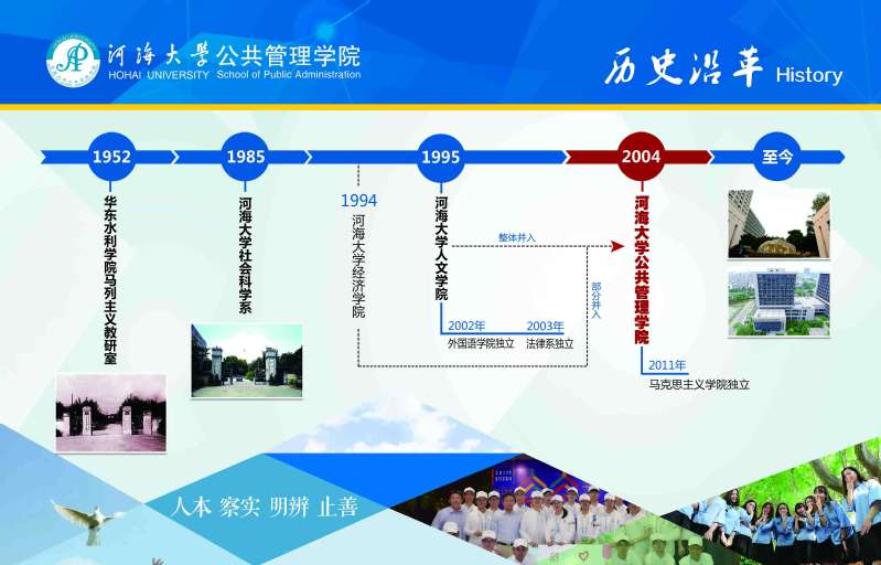 永利集团3044欢迎光临的前身可追溯到1952年成立的华东水利学院马列主义教研室。1985年,成立了社会科学系。1992年根据经济和社会发展的形势和需要,成立了水利部移民研究中心。1995年,以社会科学系和外语系为基础,成立人文学院。2002年,外语系从人文学院中分出,单独成立外国语学院。2004年,人文学院(法律系行政独立)与移民研究中心整合为永利集团3044欢迎光临。2011年,哲学系和政治学系从永利集团3044欢迎光临分出,单独成立马克思主义学院。